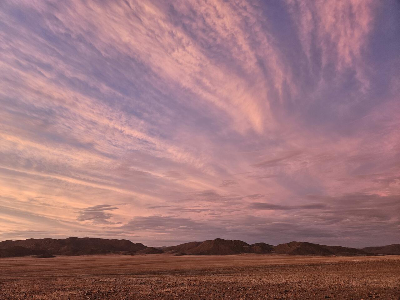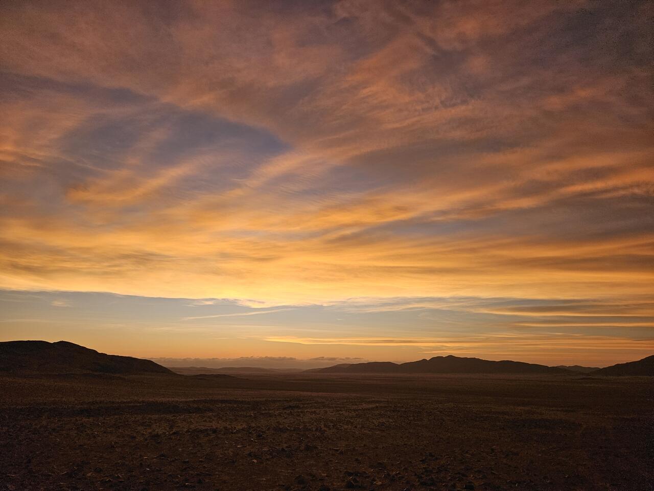 Von Minute zu Minute ändern sich die Farben des Himmels und der Steine am Boden. Absolute Stille, nicht mal ein Zirpen zu hören oder Fliegen oder gar Mücken