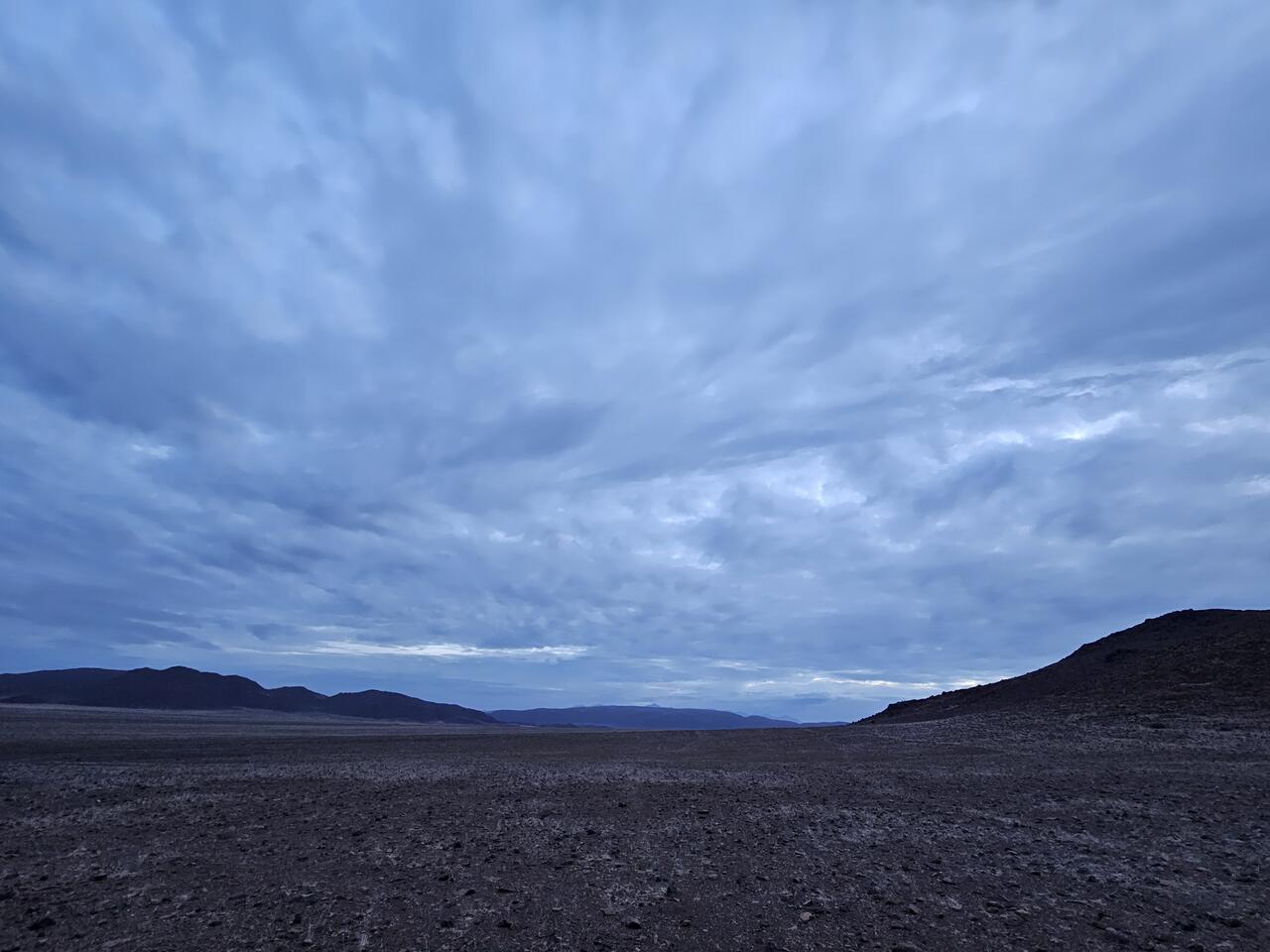 Liegt da gar ein Grünschimmer am Berghang ? Und die Wüste unten mal gelb, mal braun auch mit Grünschimmer ? Wir haben nun bewölkten Himmel und dennoch solche Farbspiele ?