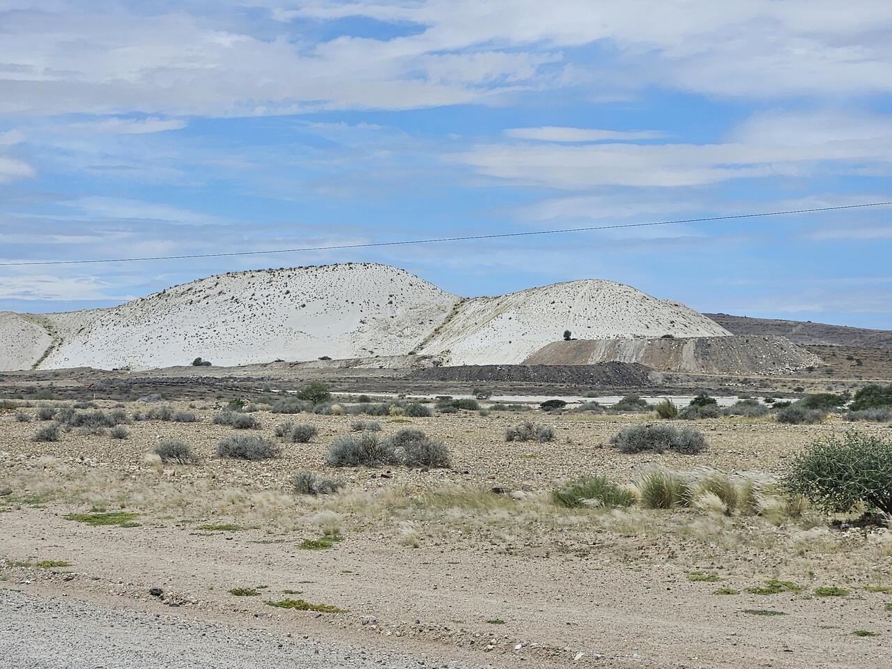 Eine Mittagsmahlzeit in Uis ist eine Erholungspause mit Blick auf weiße Fördergruben - hier soll es Nickel geben. Es sieht sogar nach bescheidenem Wohlstand aus hier.