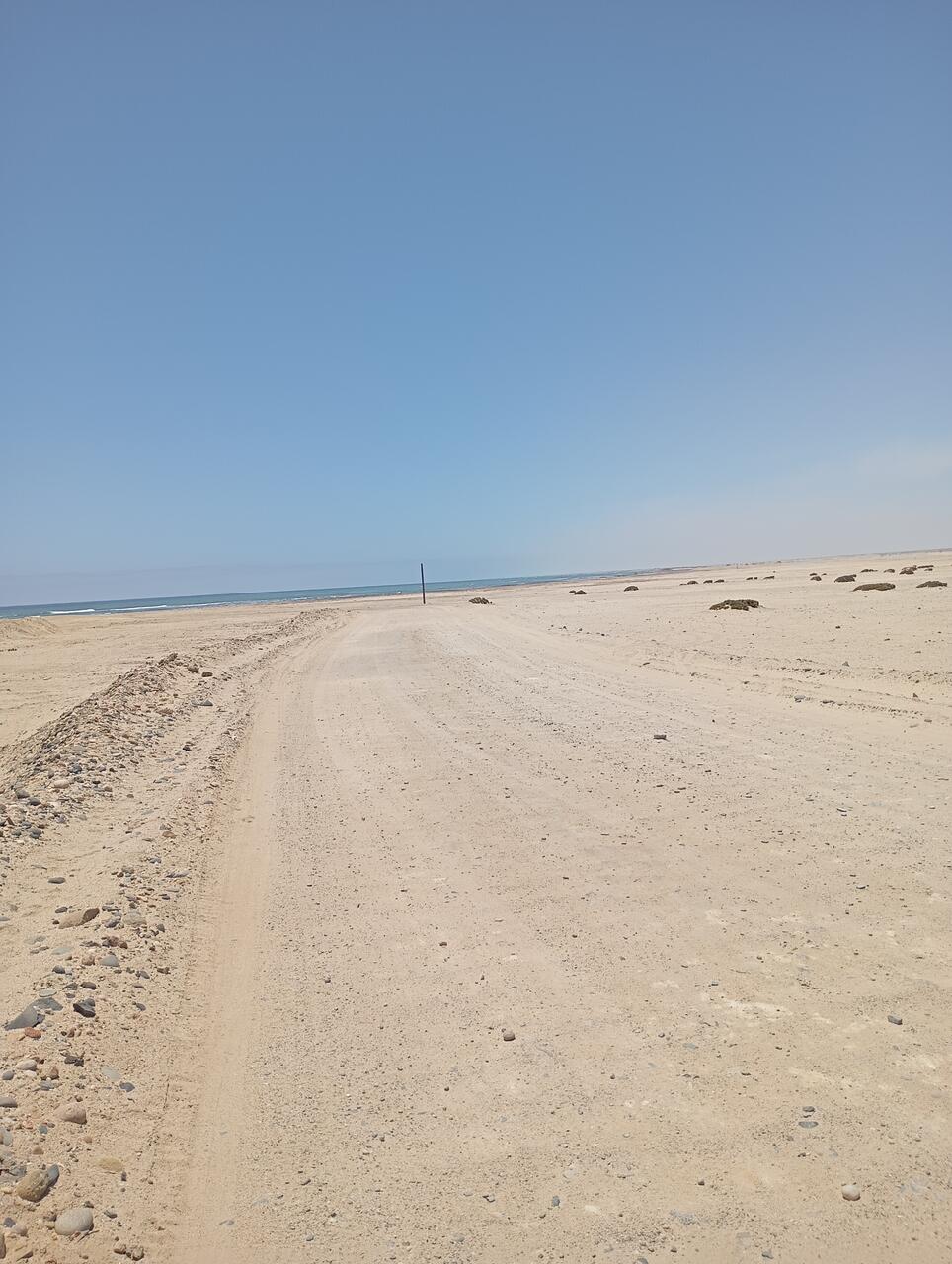 Da ich nicht sicher bin, ob ich auf dem Rückweg nicht doch wieder gegen den Wind müßte, kehre ich probeweise mal lieber um. Ein Wegweiser nach Henties Bay zeigt noch 54 km dorthin an. Also muß ich ja mindestens 16 km gefahren sein, das sollte reichen !