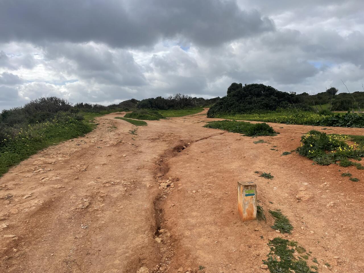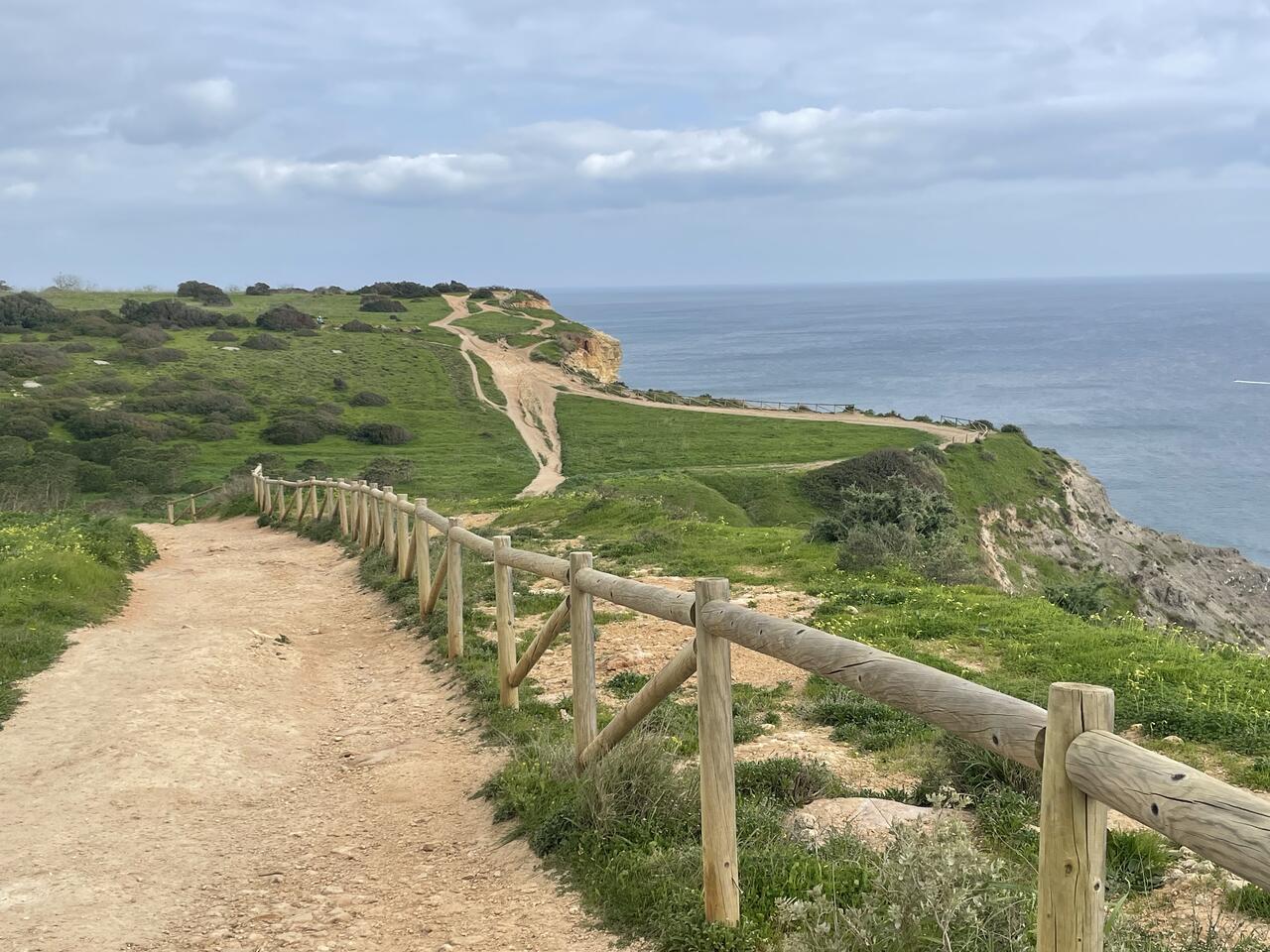 Der Weg ist zur Küste hin meist mit Holzgeländer gesichert—an einigen Stellen aber auch nicht. Öfter sehen wir auch Erdrutsche und Menschen die es nicht lassen können für Fotos dicht an der Steilküste zu posieren.