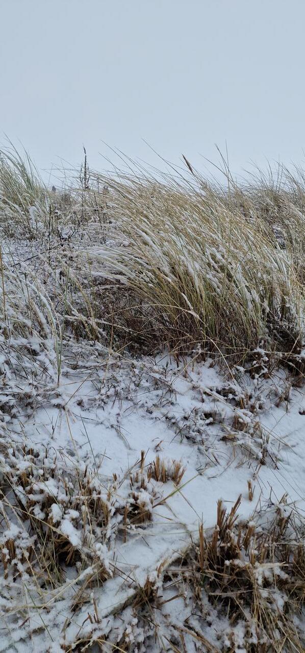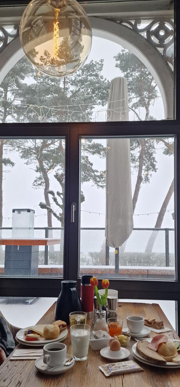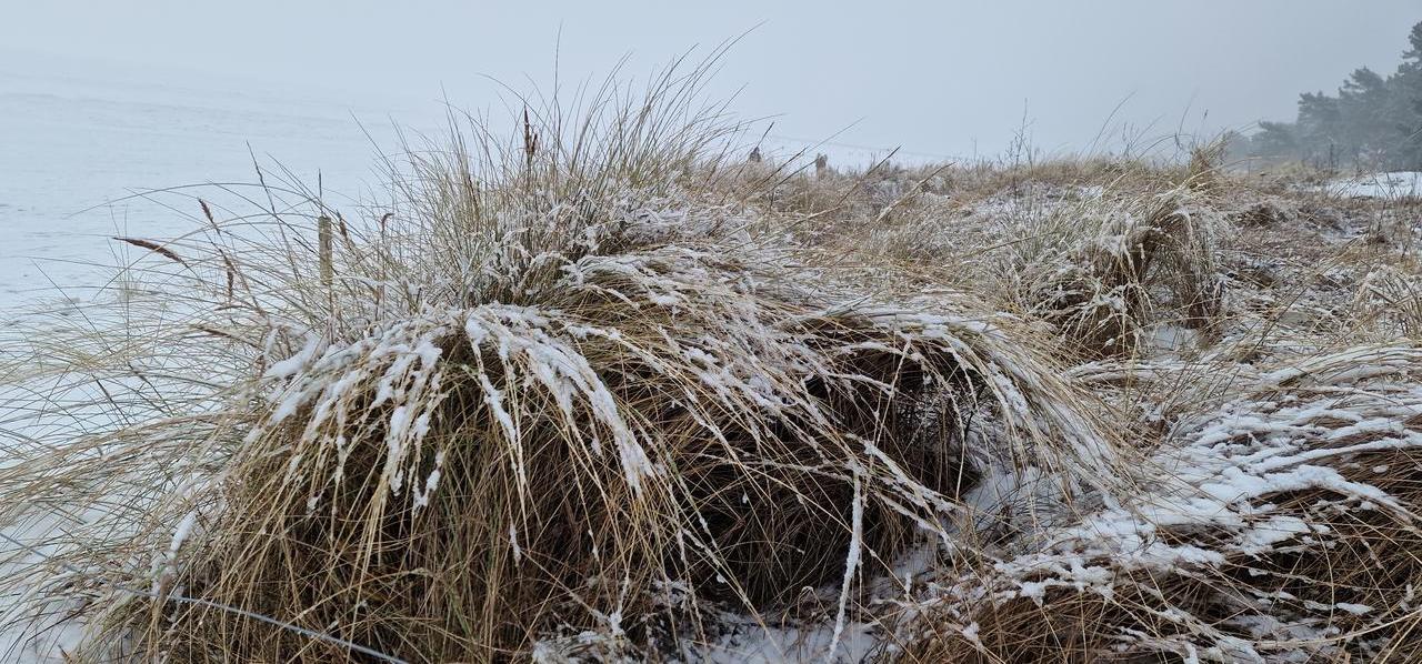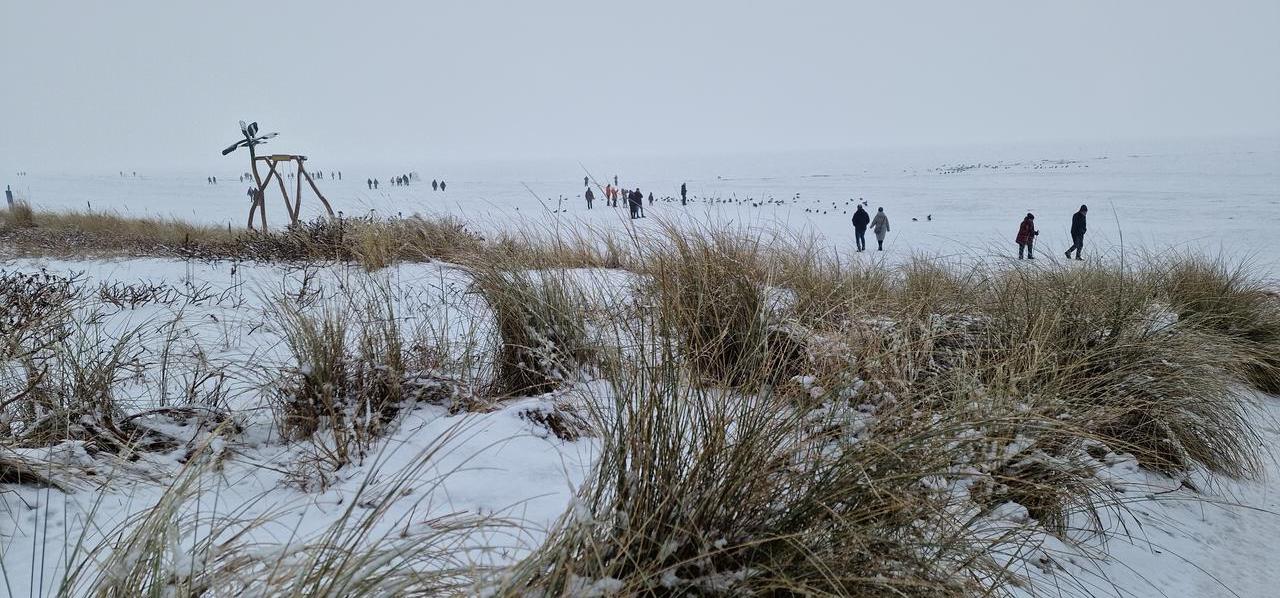 Über Nacht hat es geschneit. Die Welt sieht weiß und wie frisch gepudert aus. Bei unserem Frühstück geniessen wir heute nicht den Seeblick, dafür aber den leisen Flockentanz. Das ist so richtig ruhig und entspannend. Wir gehen noch einmal an den Strand. Auch das Dünengras sieht heute mit seinen weißen Schneemützchen besonders aus. Dann heißt es auch schon Abschied nehmen. Es war zwar eine kurze, dafür aber eine intensive Zeit hier an der zugefrorenen See. Und dieses Naturschauspiel selbst erlebt zu haben, wird mir unvergesslich bleiben!!!