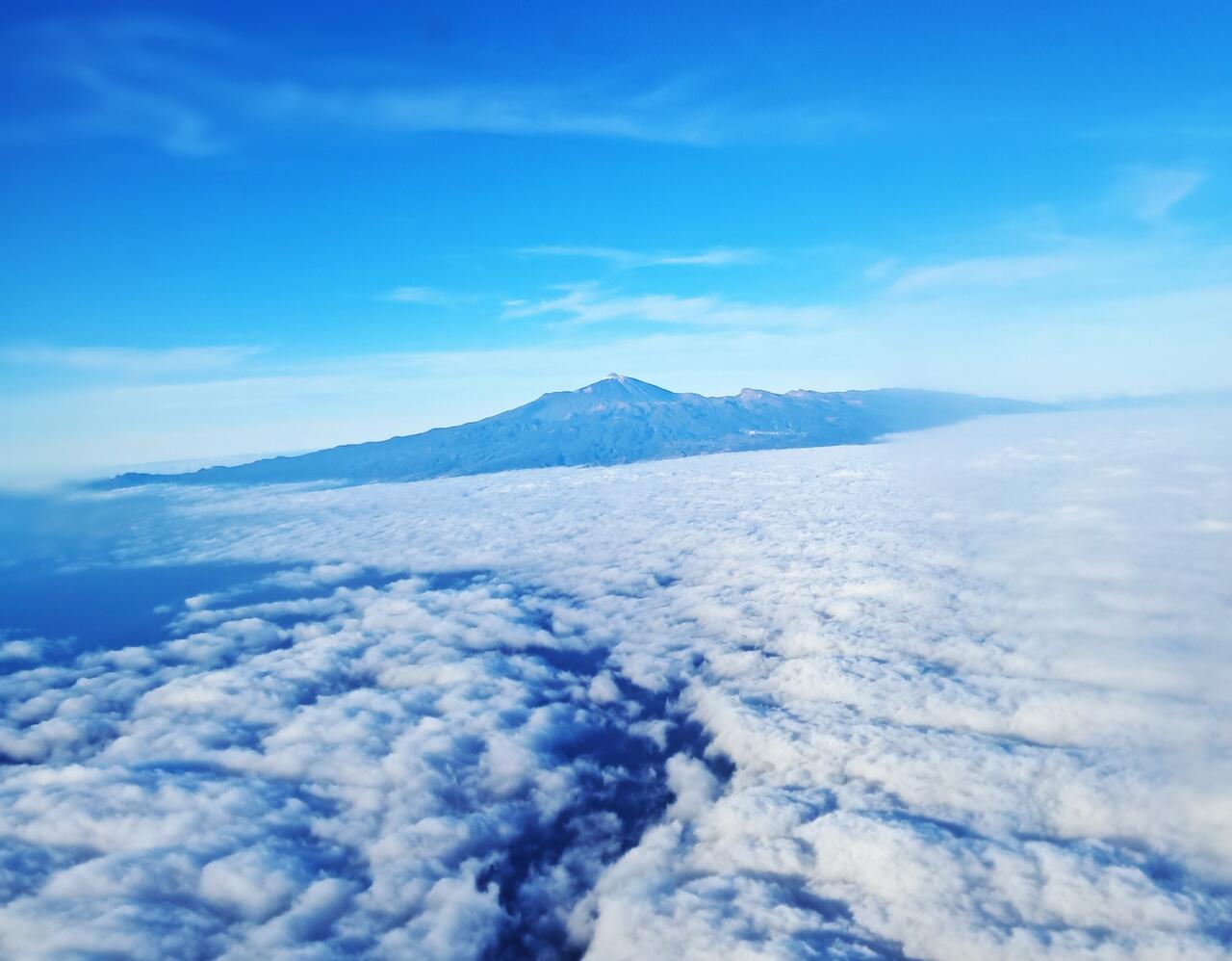 Und es ist immer wieder ein schöner Anblick, wenn beim Anflug der Teide über den Wolken zu sehen ist.