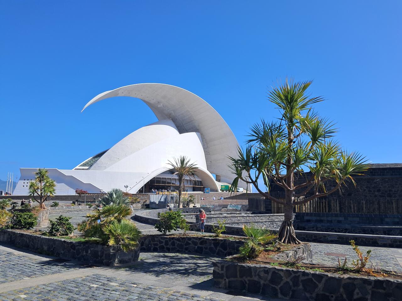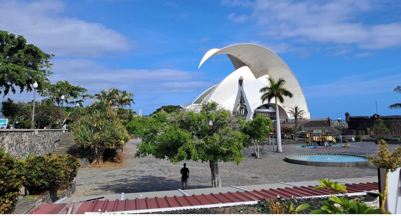 Wir kamen am imposanten Auditorium vorbei, entworfen vom spanischen Stararchitekten Santiago Calatrava. Das 2003 von König Felipe eingeweihte Bauwerk ist immer noch ein Blickfang.