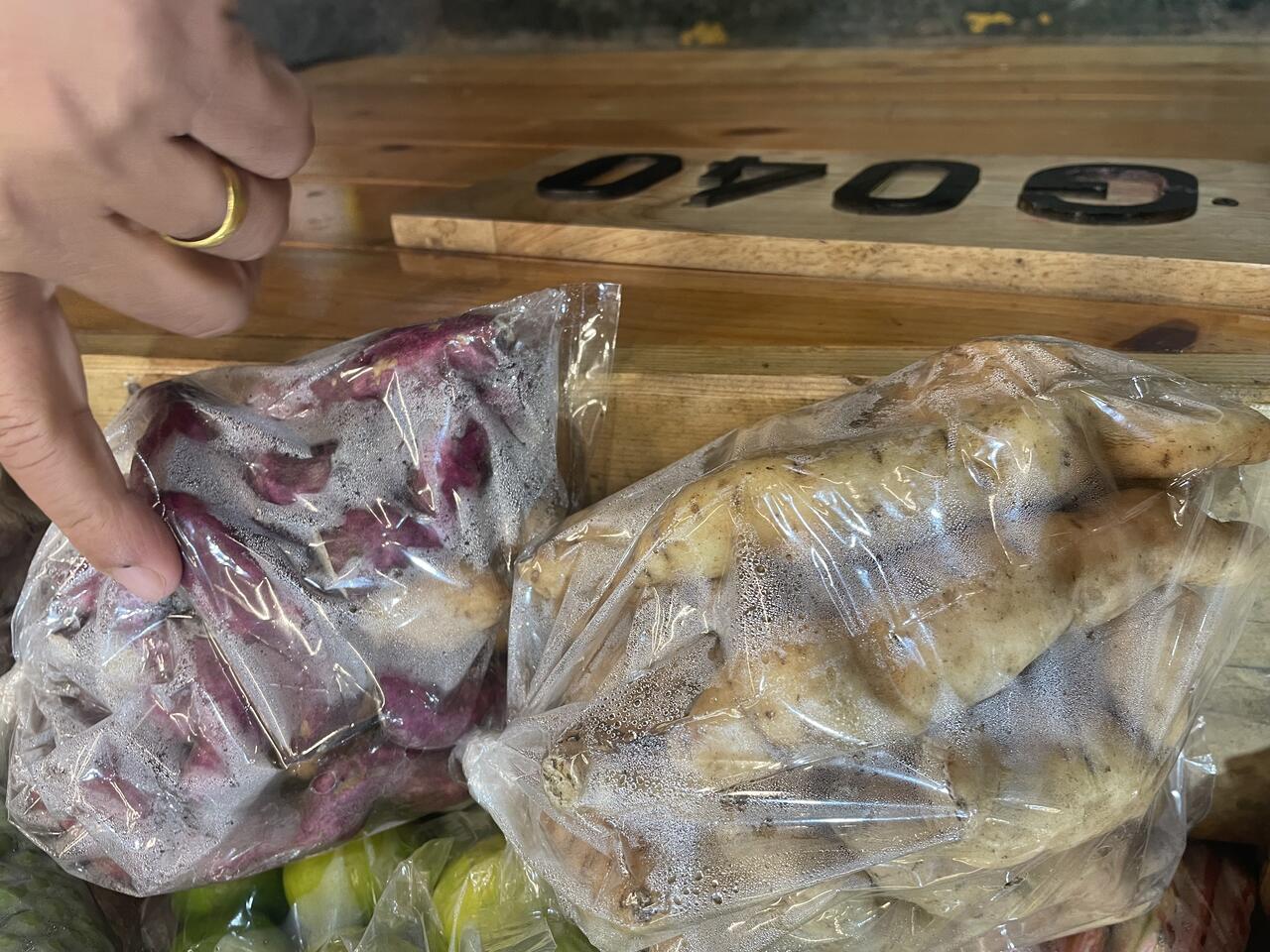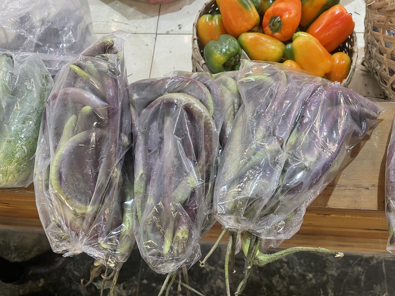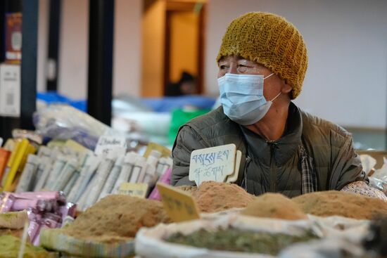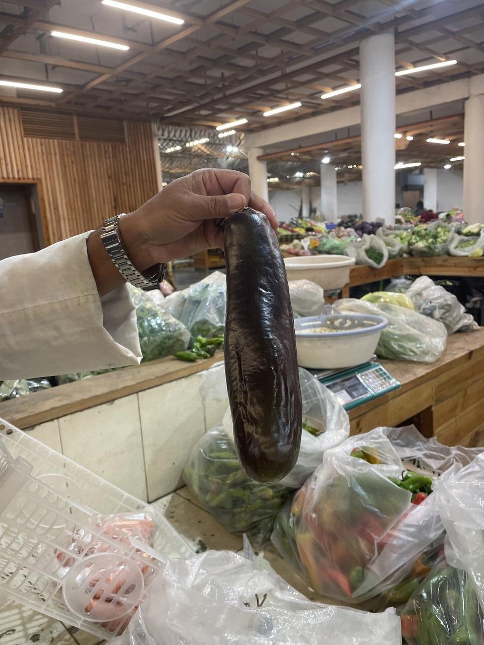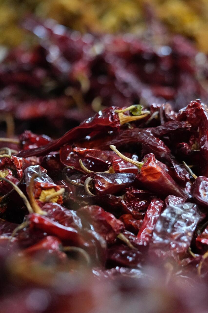 Die große Markthalle ist Zweigeschossig: unten befinden sich die Produkte aus Indien und oben die aus dem eigenen Land - hier wieder die Ketten mit dem getrockneten Käse aus Kuh- und Yak-Milch