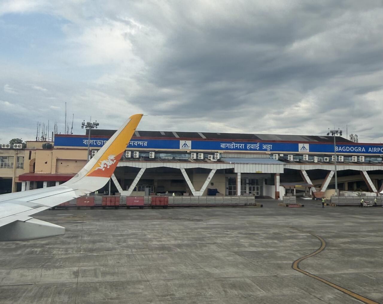Wir fotografieren und erkennen dann: „Bagdogra Airport“ - ein kleiner internationaler Militärflughafen in Westbengalen.
