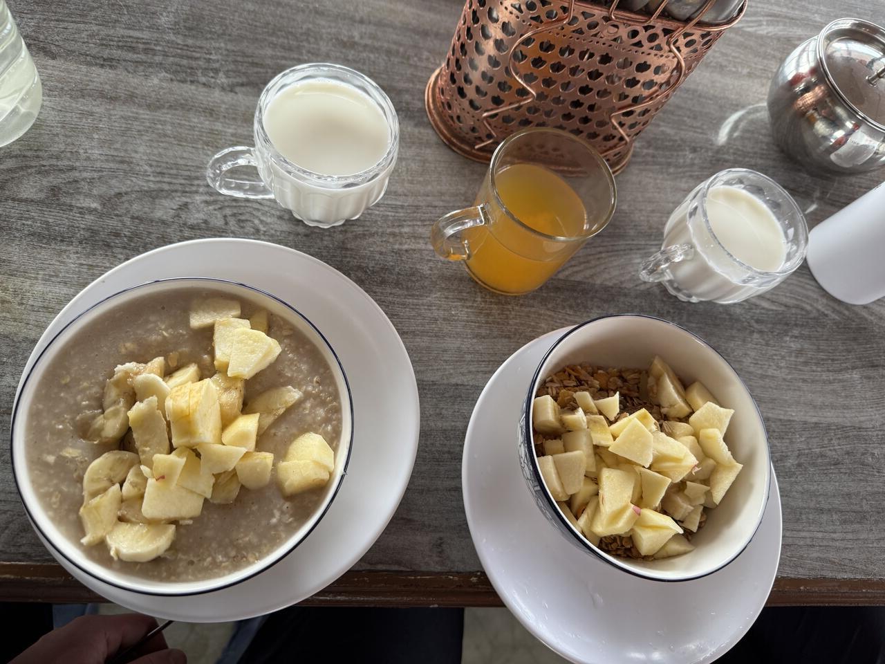 Die Wahl fällt auf Porridge und Müsli, jeweils mit Früchten, dazu kommt etwas Honig. Genau das richtige für den anstehenden Marsch zum heutigen Ziel auf knapp 3050m: das Low Camp!