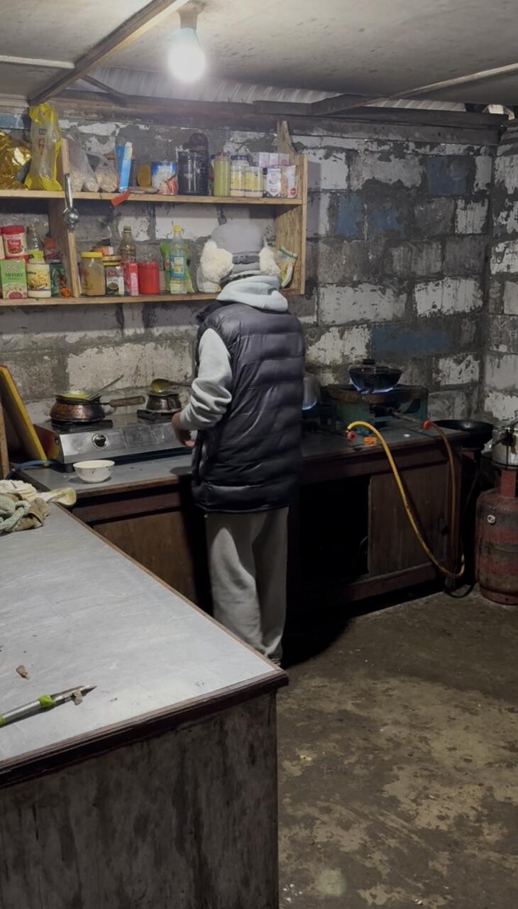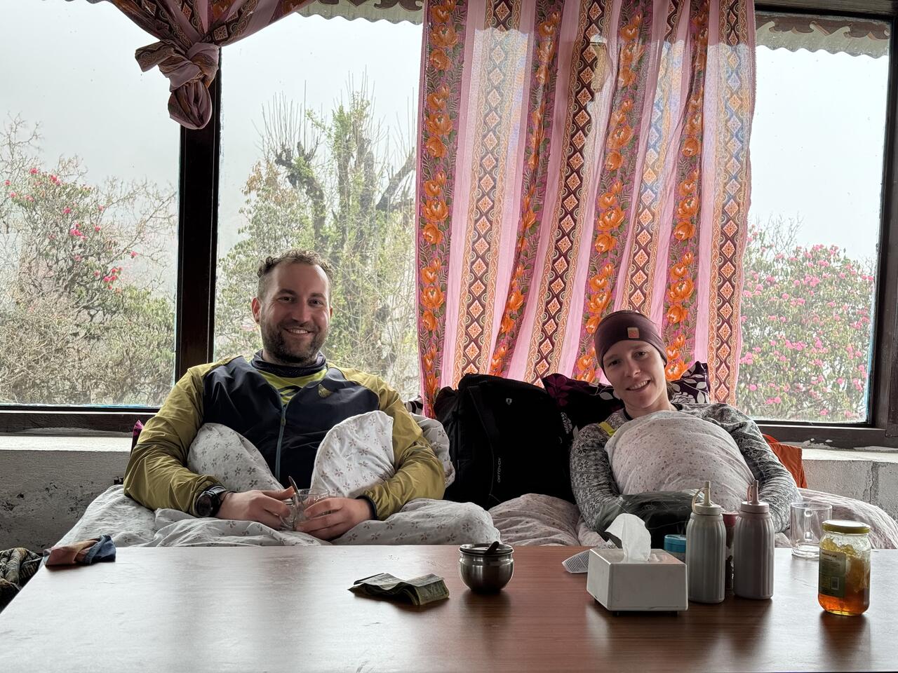 Trotz warmer Dusche ist es streng kalt im Diningroom und wir wickeln uns in vom Hüttenwirt angebotene Decken ein, da aufgrund des Irankrieges die Gasheizer nicht angestellt werden bzw. diese rationiert sind.