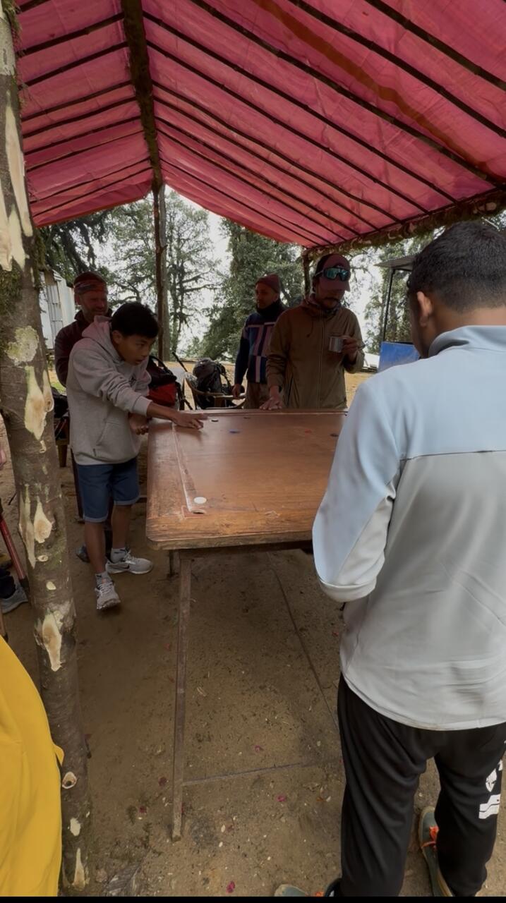 Der bronchiale Infekt bei Nicolas ist nach wie vor präsent und ein warmes Getränk tut hier mehr als gut. Trotz Regen können wir die einheimischen Guides beim Spielen eines Flipspiels beobachten - eine sehr spaßige Angelegenheit, die viel Platz zum Lachen bietet.