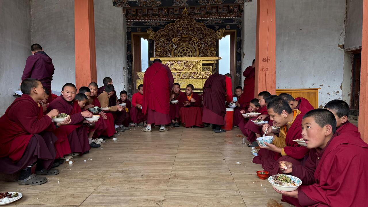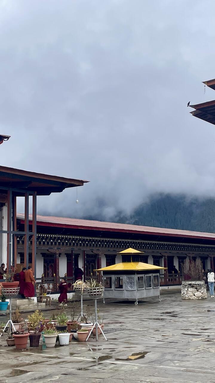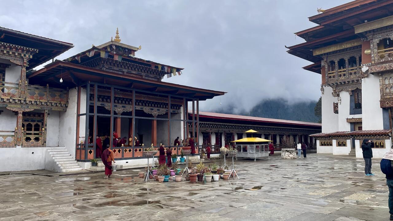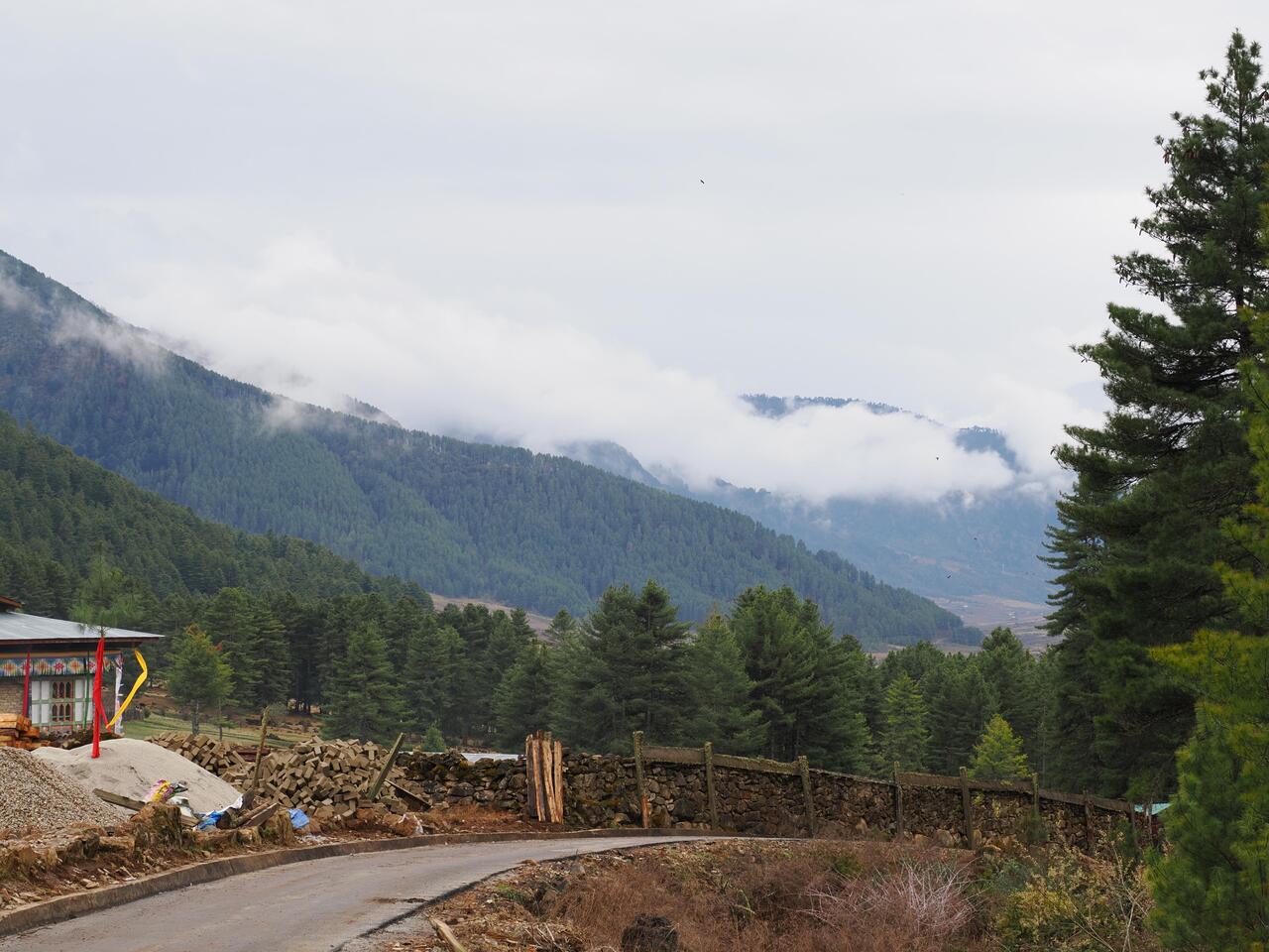 Wir starten auch früh zum „Gangtey-Kloster“ - bis dahin haben wir 2,5h Fahrzeit in Serpentinen durch die Berge in Höhen um die 3000m