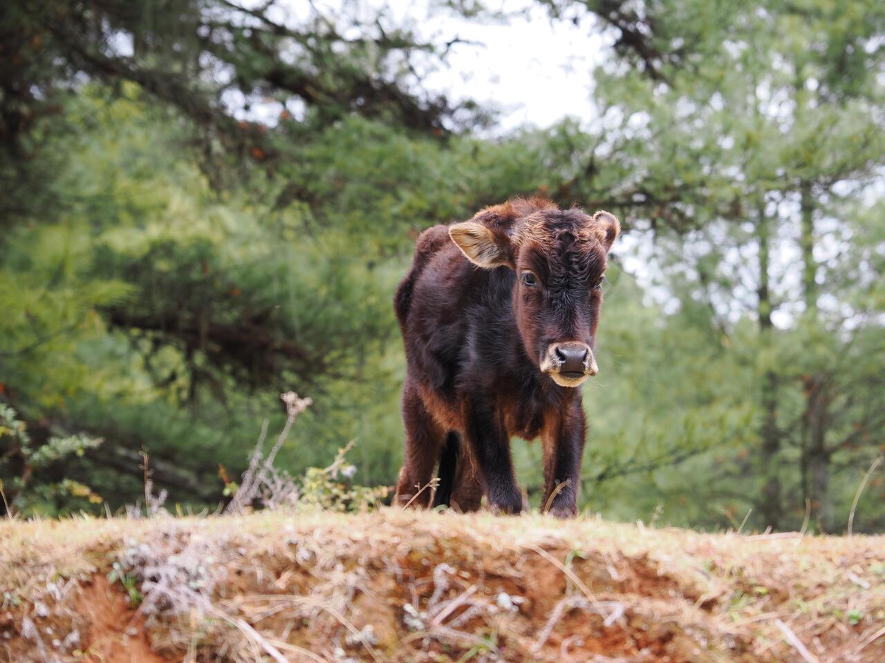 Ein junges Zwergrind —diese Rasse gehört zu den kleinsten Rinderrassen der Welt und ist bekannt für ihre Robustheit und Anspruchslosigkeit