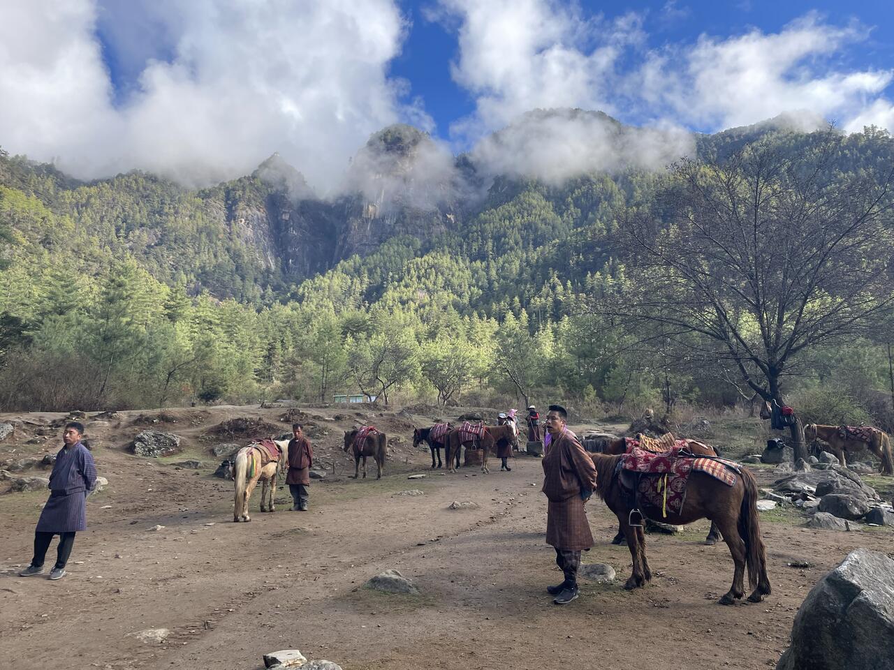 Nach ein paar Metern kommen wir an den Platz, an dem man für die erste Strecke Pferde zu 14 US$ mieten kann