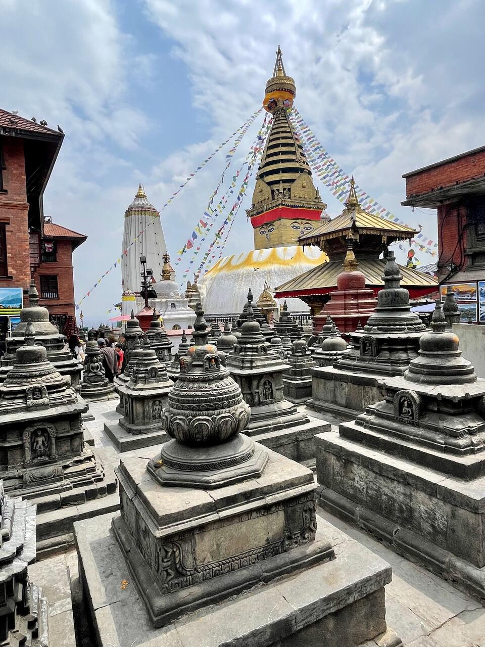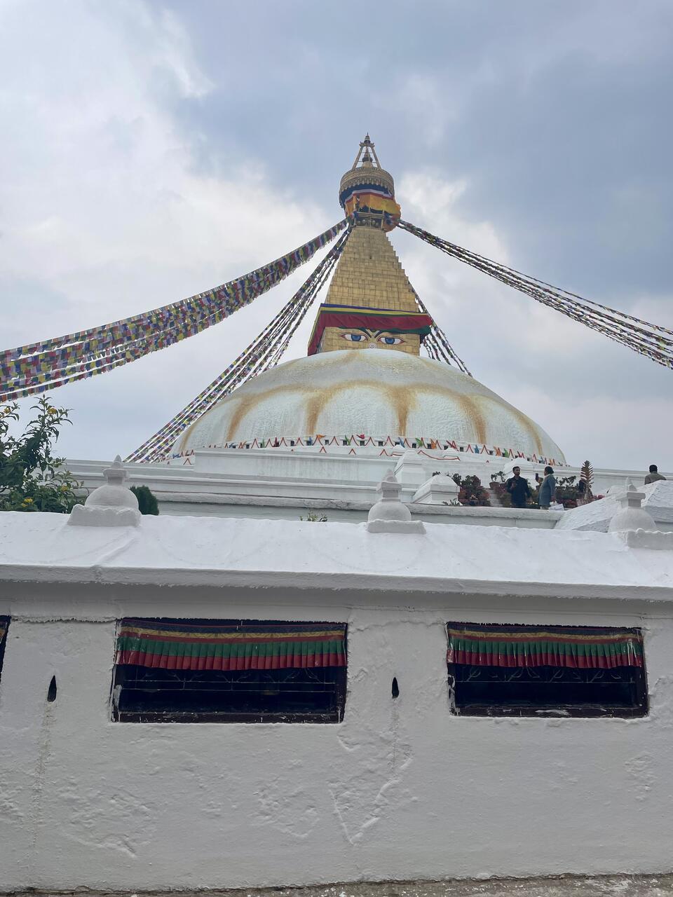 Die berühmten Augen Buddhas sind auf allen 4 Seiten zu sehen und stehen für Weisheit und Allwissenheit-diese StuPa ist 2500 Jahre alt und gilt als das Herz des buddhistischen Lebens