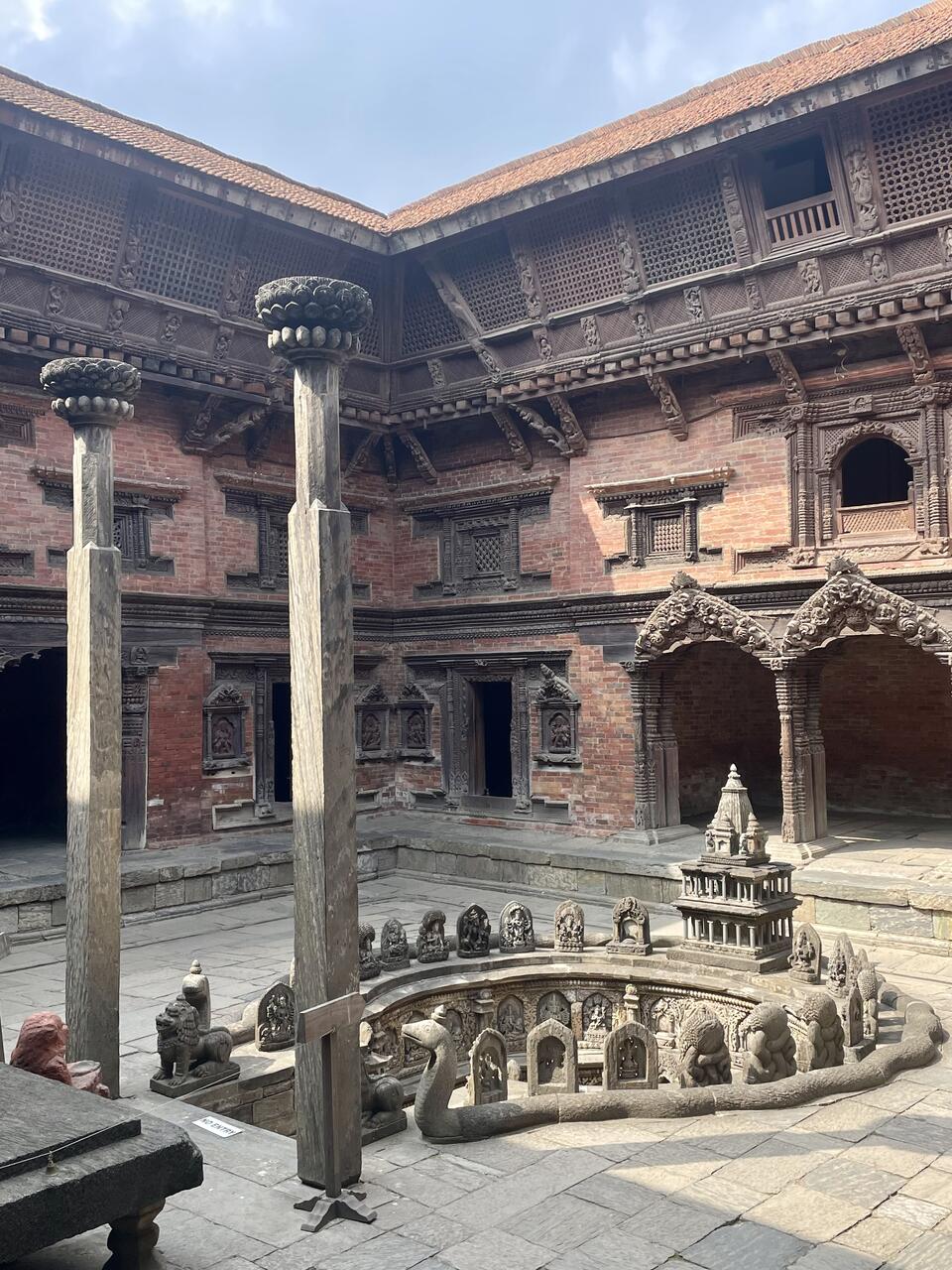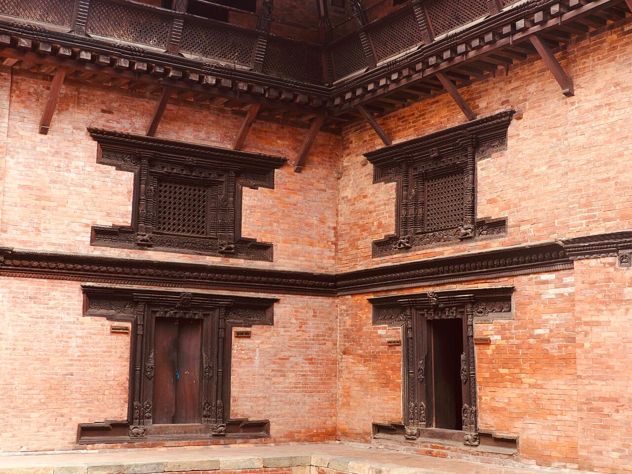 Der ehemalige königliche Palast mit detaillierten Holzschnitzereien und roten Backsteinen-hier sind wir im 2. Innenhof , dem Keshav Narayan Chowk