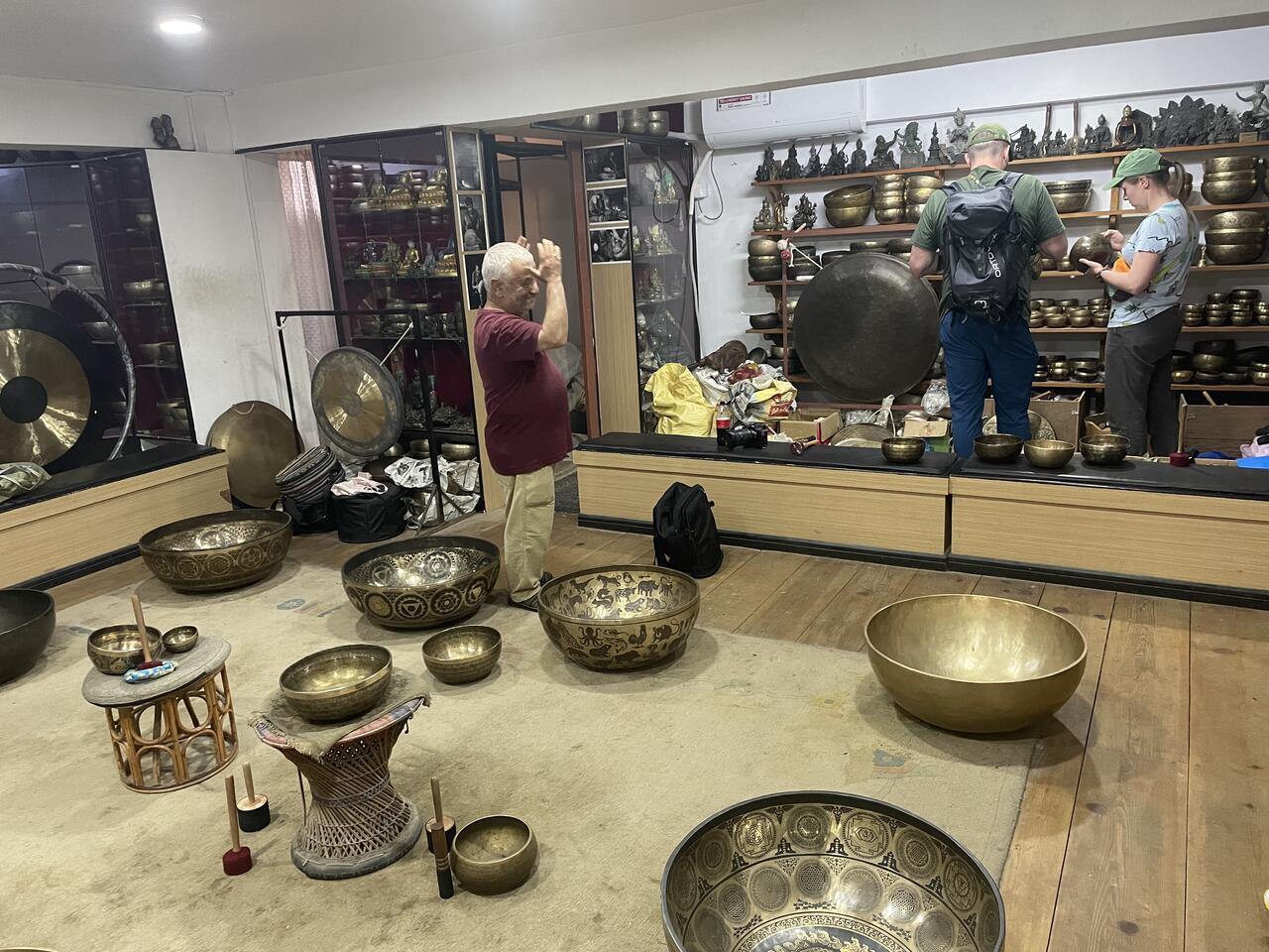 Thalia und Nicolas möchten unbedingt noch eine oder 2 Klangschalen kaufen- und so suchen wir einen Laden auf den uns unser Guide empfiehlt