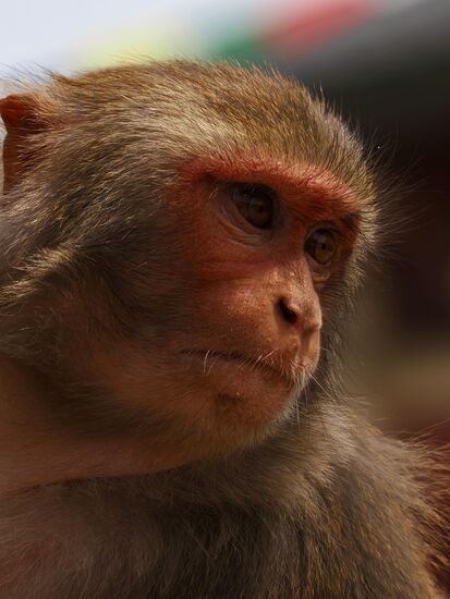Hier hat einer nicht aufgepasst und wollte eine Banane essen. Die wurde ihm prompt vom Affen geklaut, der ihm auf die Brust gesprungen ist. Nach dem Schreck kann er nun filmen ,wie der kleine Kerl die Banane verspeist