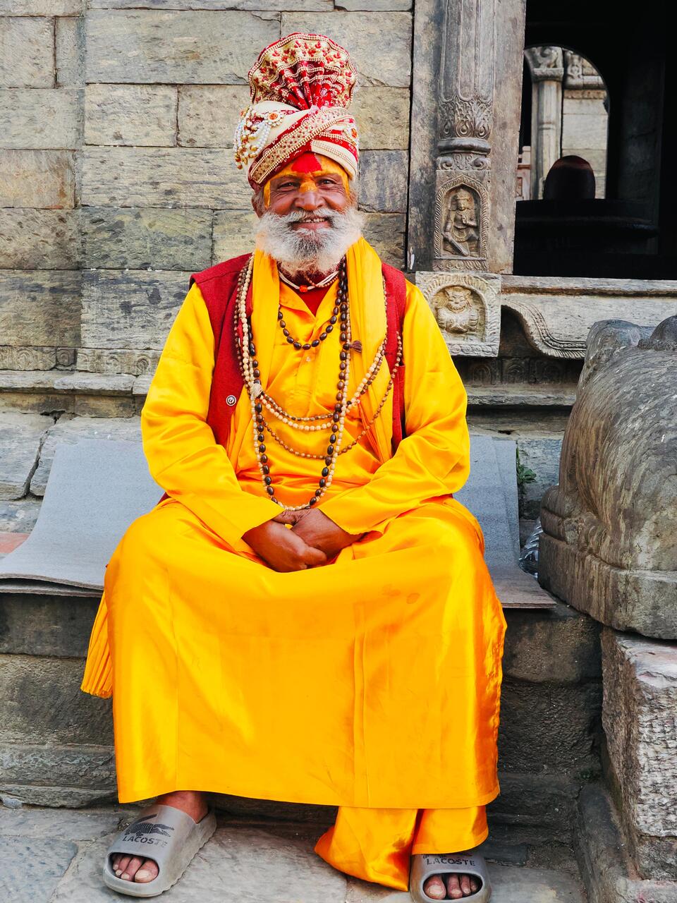 Am Flughafen Kathmandu steht Udaya mit traditionellen Blumenkränzen zur Begrüßung bereit—ich bin erstaunt: er hat sich kaum verändert! Ist es wirklich schon 10 Jahre her, dass uns dieser junge Mann damals am Flughafen „aufgegabelt“ hat und uns eine Stadttour verkauft und bei der Suche nach einer günstigen Unterkunft geholfen hat? Damals war er Mitte 20–jetzt hat er Frau und 2 Kinder und ein ziemlich gutes Unternehmen