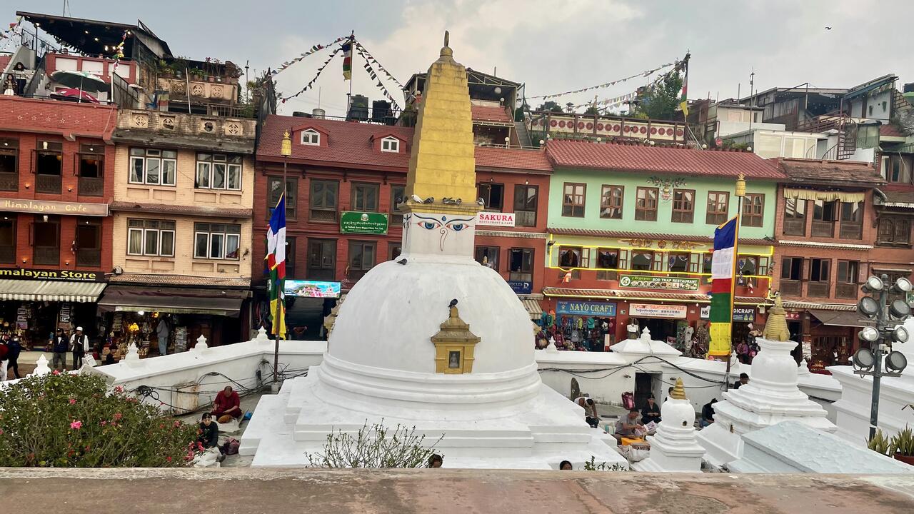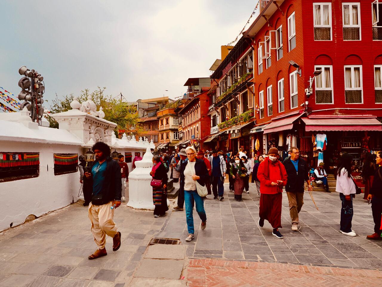 Die Gegend um die Stupa ist von zahlreichen Restaurants und Souvenirläden umgeben und ist ein lebendiges kulturelles Zentrum