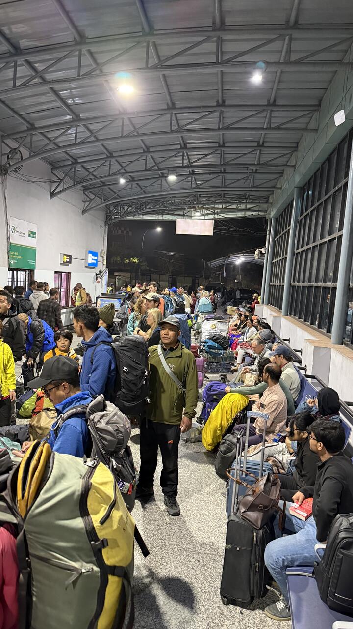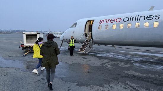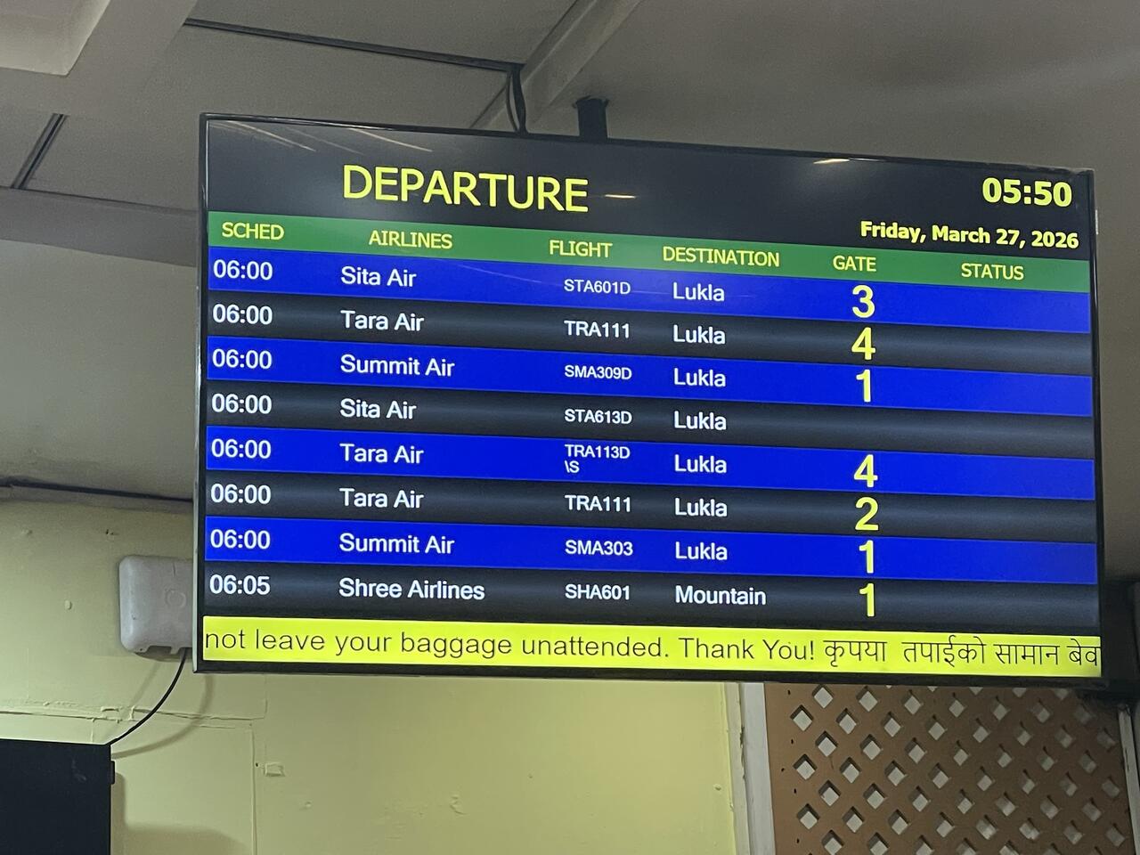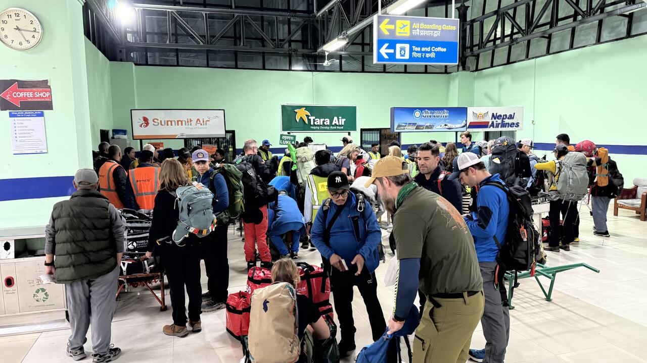 Mengen von Trekkern, die von hier nach Lukla fliegen und Trekking in den bergen machen