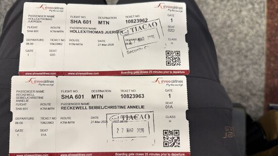 Für heute haben wir uns einen Himalaya-Rundflug über „Aviator“ gebucht.