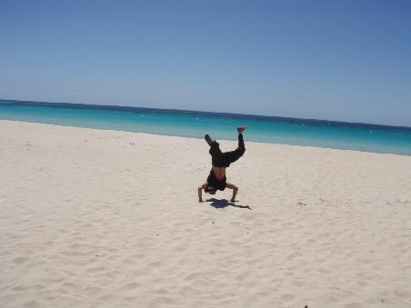 8:30 Uhr aufstehen...Dickes Fruehstueck und Morgendsport am Strand.....danach klapperten wir den Norden der Kueste ab, fanden aber keinen Spot der sich mit Injidup messen konnte also wieder Injidup. Am Abend schliefen wir nach deftigem Essen, duschen und Geraete laden im nahegelegenem YHA Backpackers, hinter nem verlassenem Industriegebaeude.
