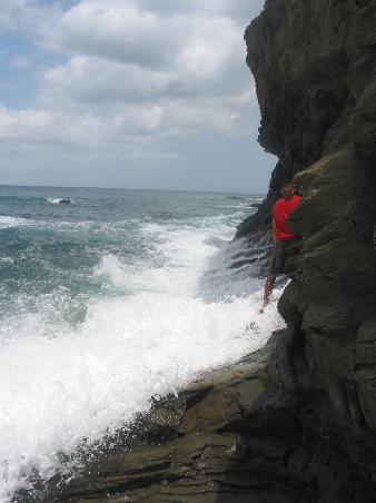 Surfen musste ich mir auch unbedingt antun; das heisst ich hab's probiert. Nach ein paar Stunden hatte ich aber genug probiert fuer meinen Geschmack, und ich beliess es dabei. Bin dann lieber mit Arent die Felsenkueste erkunden gegangen...