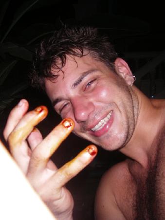 Da traf man auch endlich mal auf spassige Kameraden, die meisten kannten wir bereits aus den einsahmen Stunden vom Tauchboot wahrend den Fahrten zu irgendwelchen Riffen So z.B. einen Israeli namens Picatschu (kein scheiss, der Kerl heist so!). Aber viel interessanter erscheint doch hier ein amerikanischer Spasti, der uns mit seinen Eulenspiegeleien den ganzen Abend wunderbar unterhalten hat