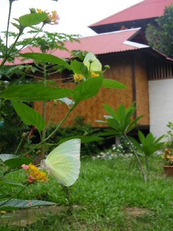 Wir fanden eine Bungalowanlage etwas auserhalb des ganzen. Zugegeben, manchmal kamen uns dann die 20 min Fussmarsch wie eine Woche vor, aber hey, der Kanadier der das Ding gebaut hat (und mit seinen 54 jahren noch immer selber unterhaelt), muss dabei irgendwie an den Garten Eden gedacht haben.