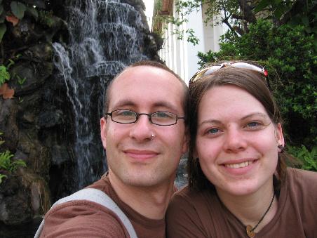 Heute haben wir uns bereits um 6:30 (= 0:30 in Deutschland) auf den Weg zu unserer ersten gemeinsamen Erkundungstour gemacht. Zuerst haben wir eine wunderschoene Tempelanlage (Wat Bowornniwet) besichtigt. Wir hatten nicht damit gerechnet eine solche gruene Oase mitten in Bangkok vorzufinden. Zum Glueck waren ausser uns keine weiteren Touristen da, so dass wir die Anlage in aller Ruhe geniessen konnten. Nach dem wir den Moenchen bei ihrem Gebet zugesehen hatten, haben wir uns die weitlaeufige Tempelanlage angeschaut.