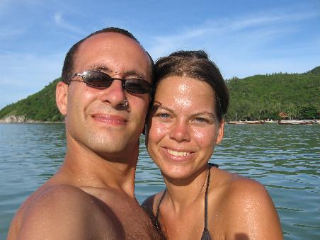 Leider mussten wir feststellen, dass auch unsere Huette in Koh Phangan von Kakalaken aufgesucht wird. Da man uns auf die schnelle angeblich kein Moskitonetz besorgen konnte haben wir eine Nacht in der Haengematte geschlafen. Sind am Morgen ganz frueh aufgewacht und haben beim Sonnenaufgang einen Strandspaziergang gemacht.