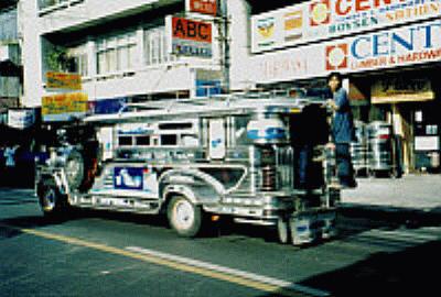 Was ist ein "Jeepney"? Er war einst ein Jeep im Dienste der amerikanischen Streitkräfte. Vor dem allgemeinen Verschrotten gerettet, mit wildromantischen Bildern versehen sind sie nun das billigste Personenverkehrsmittel auf den Philippinen . Weiterer Vorteil, er kann bis zu 20 Fahrgäste und mehr auf einmal transportieren und hält überall wo sich wer zum Aussteigen oder Mitfahren bemerkbar macht. Großer Nachteil sind die grässlich stinkenden schwarzgrauen Dieselwolken die der Jeepney ausstößt.