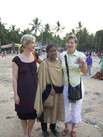 Dr. Gopan ist kein Freund von spontanen Fotos im lärmenden Tempelgeschehen. Susanne, rechter Hand kann sich auch nicht begeistern...