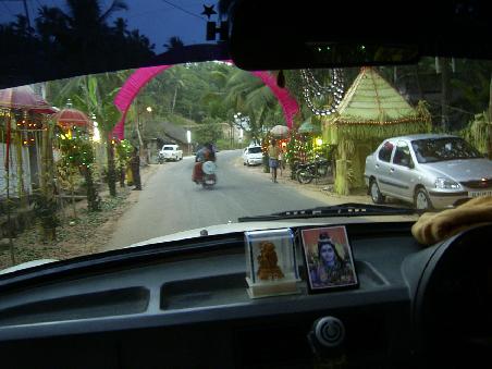 Taxifahrt zurück vom Tempel durch geschmückte Straßen