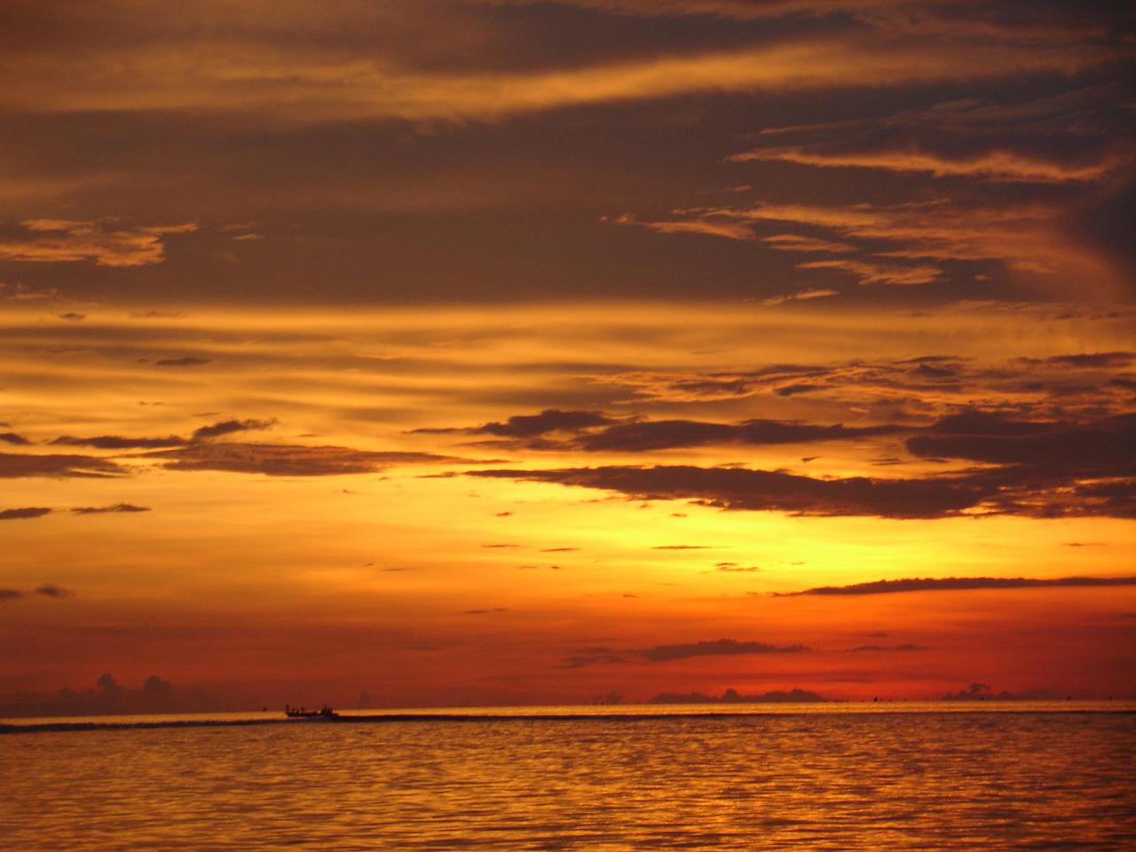 Ich bekomme nach zaehen Preisverhandlungen einen Bungalow fuer 1,50 Euro, 5 Meter vom Meer an der Westkueste der Insel. Von dem Bett auf meiner Terasse kann ich den magischen Sonnenuntergang ueber dem Meer bewundern. Fuer die voellig zugekiffte Hotelcrew bin ich mit meienr Gitarre ein Halbgott und mss alle Lieder zwei Mal spielen ("No woman, no cry" von Bob Marley sogar fuenf Mal!).