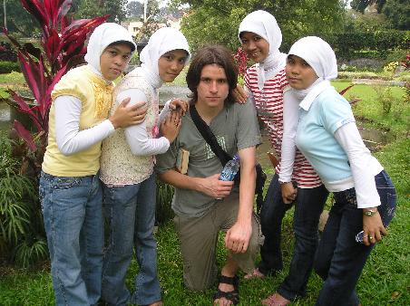 Wenn ich durch die Strssen laufe dann hoere ich meistens ein freundliches "hello mister". Viele wollen auch ulkigerweise Fotos mit mir machen wie unten. Meistens sind sie dann ganz aufgekratzt und freuen sich genau wie ich mich auch. Wenn also zu so tollen zwischenmenschlichen interkulturellen Kontakten auch noch Vulkantouren, wunderbare vegetationsreiche Waelder mit vielen Affen ,Schlangen, tollen Blumen usw. hinzukommmen dann gibt das ungefaehr das wieder wie ich Java gerade erlebe.