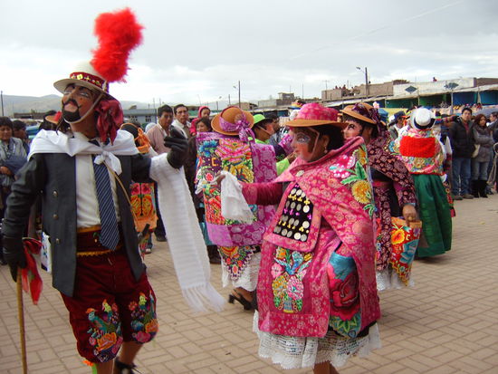 Der Ausflug endete mit der "La Tunantada", dem Folklorefest von Jauja. Ein grosser Platz mit Folkloregruppen oder Gauklern an allen Enden. Es wurde Huaynas (Folklore der Anden mit Saxofonen, einer Geige und einer Harfe) gespielt und getanzt.