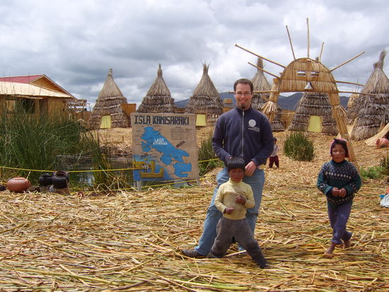 An sich sind die Schilfinseln jedoch schon ziemlich interessant. Die Inseln wurden von ihren Bewohner selbst konstruiert und schwimmen auf dem See. Sie bestehen aus Erde, in der Schilf waechst sowie einer knapp 2 Meter dicken Schicht aus Schilf, die darueber gelegt wird. So werden jeweils einige Quadratmeter der Insel gebildet. Diese werden anschliessend mit je 2 Pfaelen und einem Seil miteinander verbunden. Ebenso werden die aeusseren Teilstuecke am Grund verankert, damit die Inseln nicht wegschwimmen. Alle paar Jahre muessen sie erneuert werden.