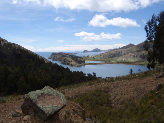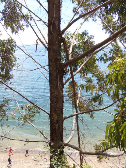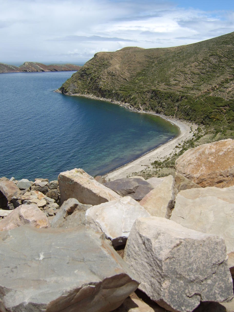 Eine sehr positive Ueberraschung, die Wanderung. Traumhafte Straende, einige unbekannte Voegel auf dem Weg, ab und zu durch schoene Waelder, Sonnenschein die ganze Zeit ueber. Die Straende koennten im Mittelmeer liegen, mit dem einzigen Unterschied, dass sie vollkommen ruhig und verlassen waren. Eines steht fuer mich fest: Die bolivianische seite des Titicacasees ist definitiv die schoenere!