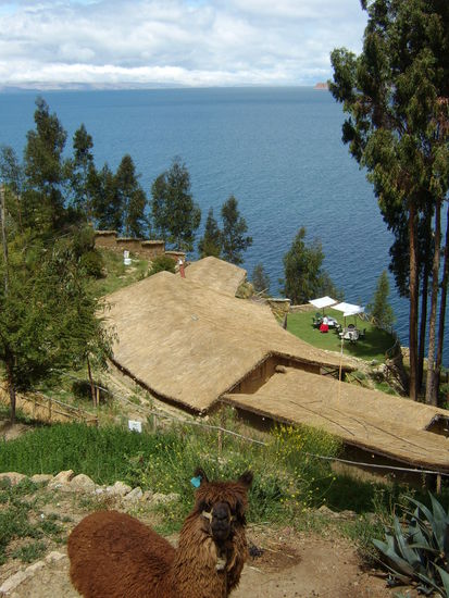 Uebernachtet hatte ich in Yunami im Sueden der Insel. Fuer den naechsten Morgen hatte ich die Wanderung zum Nordteil geplant. Leider machte die Isla del Sol ihrem Namen un diesem Tag allerdings ueberhaupt keine Ehre und es regnete in Stroemen. So machte ich mich um 10 schon auf den Weg zum Hafen des Suedens, um das erste Boot nach Copacabana zu nehmen. Gerade in diesem Moment erschien die Sonne zwischen den Wolken und der Regen liess stark nach. So machte ich mich dann doch auf auf die knapp 3stuendige Wanderung bis zu den Ruinen von Chinkani.
