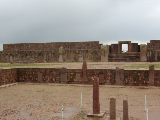 Die Kultur der Tihuanacu dauertee sich von ca. 2000 v.Chr. bis 1200 n.Chr. und erreichte am Schluss eine Ausdehnung ueber einen Grossteil Boliviens sowie Teile der umliegenden Laender. Ganz beeindruckend wie sie damals schon mit Steinen, Keramiken und Bronze gearbeitet haben. Leider meinte es aber auch das Wetter an diesem Tag gar nicht gut mit mir. Nachdem es vorher schon immer mal wieder geregnet hatte, begann es gerade als ich den letzten Teil der Staette besuchen wollte unglaublich zu schuetten. Innerhalb von 5 Minuten besass ich kein trockenes Kleidungsstueck mehr.