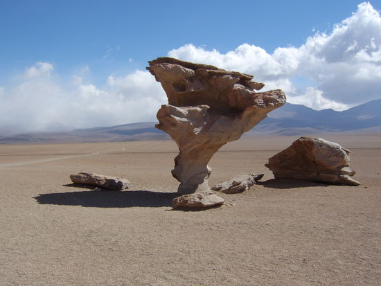 Den ersten Stop machten wir bei einigen Steinen, die recht komische Gebilde formten. Durch den starken Wind verformen sich die Steine ueber die Jahre. Am Bekanntesten ist der "Arbol de Piedras" (Baum aus Steinen).