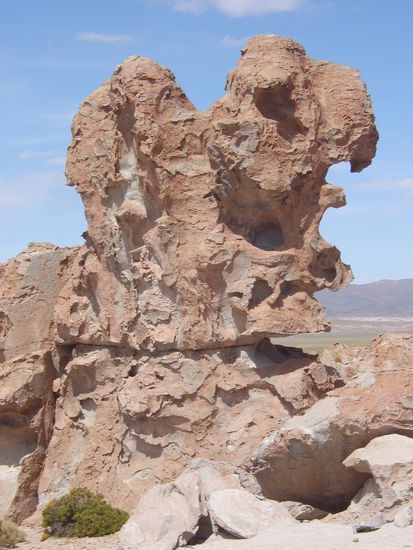 Auf dem Rueckweg nach Uyuni sahen wir noch jede Menge weiterer Steinfiguren, in denen man von Papageien ueber Gesichter wohl so ziemlich alles sehen konnte.