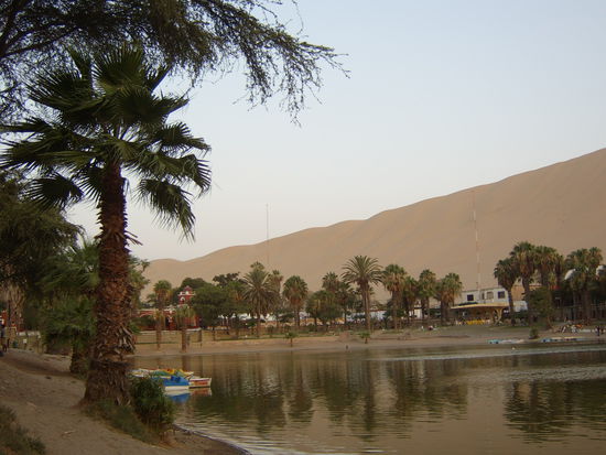 Da ich mit der Fahrt zu den Linien schon die erste halbe von gut 2 Stunden auf dem Weg nach Ica zurueckgelegt hatte, machte ich mich dann entgegen meiner urspruenglichen Planung doch noch auf nach Ica. Und von dort wenig spaeter zur Oase Huacachina. Auch Ica war mir relativ unsympathisch. Wie in Nazca ein grosses Geschrei von Taxifahrern, Hotelangestellten,...