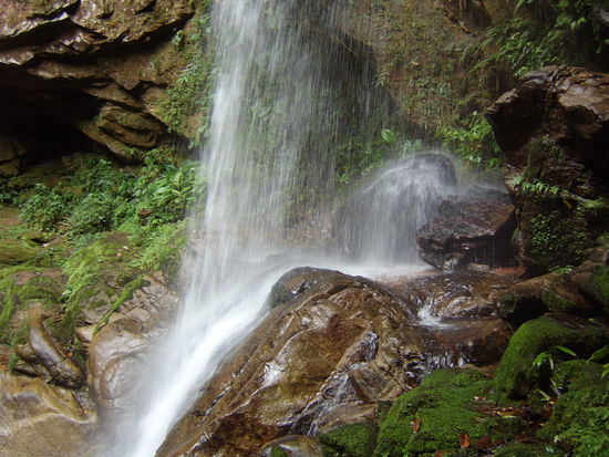 Der Wasserfall -ca. 10 Gehminuten abseits der Straße gelegen- lohnt den Besuch auf jeden Fall. 10 schöne Minuten durch den exotischen Wald, an und über ein kleines Bächlein. Einige andere Touristen wagten den Sprung in den kleinen See in den der Wasserfall fällt, leider hatte ich meine komplette Kleidung, außer der, der ich trug, in der Wäscherei, weshalb es wohl keine allzu gute Idee gewesen wäre meine Unterwäsche zu durchnässen.