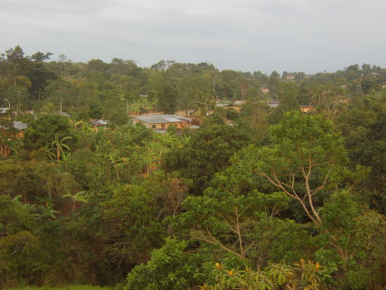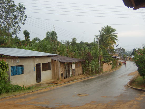 Gegen 16 Uhr zurück in Tarapoto machte ich mich dann auf in die Kleinstadt Lamas, eine halbe Autostunde von Tarapoto entfernt. Abermals kam ich so richtig ins Staunen. Unglaublich schön, diese Stadt. Im unteren Teil wohnen die indianischen Ureinwohner, jede Menge orangefarbener simpler Häuser inmitten lauter Grün, im oberen Teil die modernere Stadt, allerdings auch alles relativ simpel und ruhig. Einen schönen Ausblick hat man von dem Hügel in der Nähe, allerdings war da dann auch schon die Dunkelheit herangebrochen und ich machte mich auf zurück nach Tarapoto.