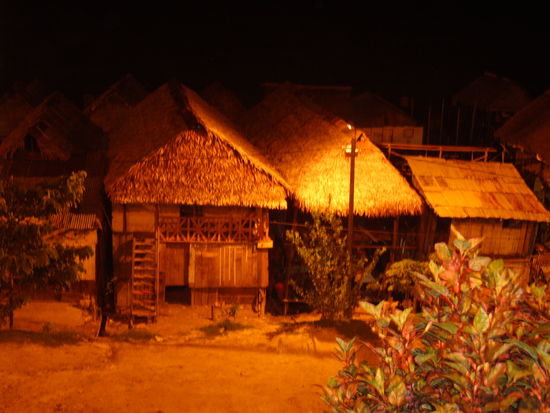 Leider hatte mein Mosquitero ein kleines Loch und so sah ich mich -als ich abends die Taschenlampe erstmals benutzte- umzingelt von Unmengen von Mücken. Nachdem das Loch gestopft war, folgte ein ca. einstündiger Kampf gegen die Mücken, an dessen Ende mein Mosquitero vom schon eingesaugten Blut der grob geschätzt bestimmt 50 Schnaken mehr rot als weiß war. Überhaupt DER große Negativpunkt im Dschungel: Unmengen an Mücken, überall! Spätestens jede Stunde muss das Mückenspray gezückt werden. Und selbst das hilft nicht immer. Eigenartig, dass die Einheimischen kaum von Mücken attakiert werden. Ausländische Delikatessen scheinen begehrt zu sein. Besonders unangenehm ist das, da wohl doch eine wenn auch sehr geringe Malariagefahr nicht geleugnet werden kann.
