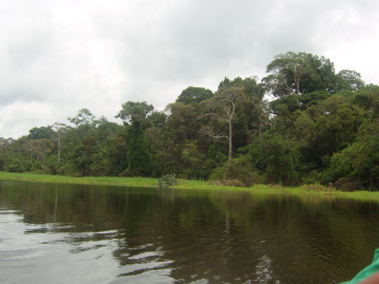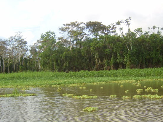So gings dann am folgenden Tag frühmorgens los, ca. 45 Minuten per Lokalbus nach Nauta, der zweitgrößten Stadt der Region. Eine ziemlich hässliche Kleinstadt am Rio Maranon, von der aus unser kleines Motorboot startete. Nach gut 2 Stunden über den Rio Maranon, vorbei am Entstehungspunkt des Amazonas, wo wir in den anderen Quellfluss des Amazones, den Uyacali, abbogen, erreichten wir das Dörfchen Puerto Miguel, von wo aus wir per Kanu nochmal eine halbe Stunde bis zum Camp gebracht wurden.