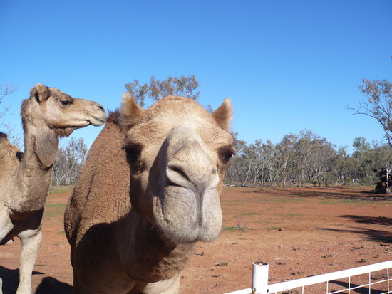 Wir wollten zu einer Camel Station. Ich glaube, noch weiter Outback konnten wir gar nicht kommen. Da es bis zur nächsten Einkaufsgelegenheit anderthalb Stunden waren, wurden die Lebensmittel per Telefon geordert, und zweimal die Woche mit der Post vorbeigebracht! Die Kamele wurden zum Wagenziehen gehalten und die Nachzucht verkauft. Zum Duschen wurde Flusswasser genutzt, dass erst in umgebauten Gasflaschen mit Holzfeuer drunter erwärmt wurde. Das Wasser war milchig, weil der Boden so feinkörniger Lehm ist, aber man konnte es beim Duschen nicht spüren. Uns wurde sogar Arbeit angeboten, aber wir waren ja schon in Eulo angemeldet.