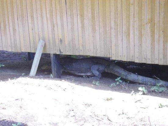 die spinnen hingen immer in den baeumen rum. leider hat meine kamera sich standhaft geweigert die spinne in scharf aufzunehmen und hat immer die bananenbaeume scharf gestellt. bloede. also das verschwommene inder mitte in eine grosse spinne!