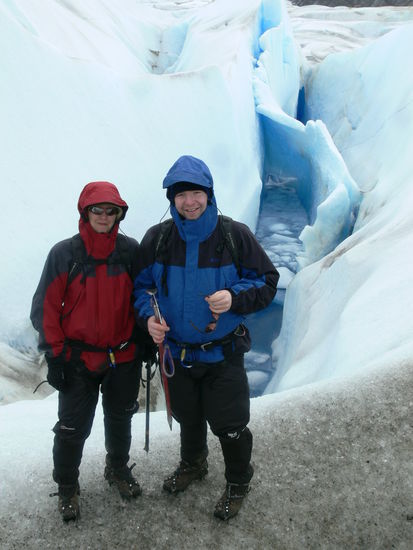 Ach so: Da war ja auch noch die Sache mit dem Gletschertrekking. Auch hier war das Glück uns Hold, denn wir ergatterten die letzten beiden freien Plätze für den nächsten Tag. Super, uns stand ein Ruhetag bevor: Nur ein paar Stunden "Spazierengehen" auf dem Glaciar Grey! Wir bekamen unsere Ausrüstung - Steigeisen und Klettergurte - ausgehändigt und entbanden die Agentur per Unterschrift von jeglicher Verantwortung, falls bei dem Eistrekking irgendwas wie z. B. ein ernster Unfall passieren würde. .... Ähm, wie war das nochmal mit dem Ruhetag?
